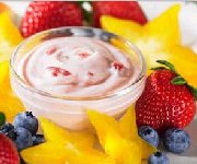 * Servir avec des fraises et d'autres fruits frais ou comme tartinade avec le pain, le quatre-quarts ou le gâteau des anges.