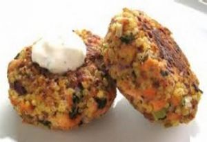 - Mélanger ensemble tous les ingrédients. Chauffer une poêle avec un peu d'huile et façonner des galettes de saumon. Cuire les galettes environ 3 à 4 minutes de chaque côté. Servir avec du riz et un légume vert.