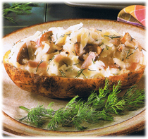 - Dans un grand bol, mélanger la pulpe de pommes de terre, (sans les piler) le mélange aux champignons, la crème sure et le parmesan. Répartir cette garniture uniformément dans les coquilles . Placer les coquilles sur une plaque à pâtisserie. Cuire au four jusqu'à ce que les pommes de terre soient chaudes, environ 20 minutes. Servir immédiatement.