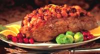 - À feu doux, faire chauffer le reste de la sauce aux canneberges et le zeste, en remuant. Badigeonner le rosbif de cette sauce.