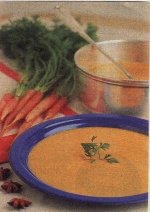 - Chauffez jusqu'au point d'ébullition, incorporez la crème et saupoudrez de coriandre hachée. Avec un petit emporte-pièce, découpez joliment des rondelles de carottes. Garnir la soupe et servir.